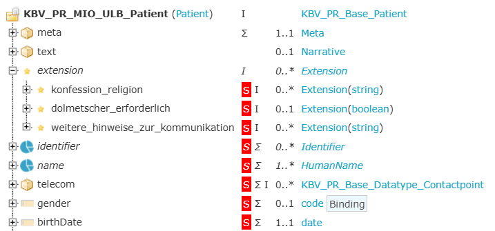 Abbildung 1: Struktureller Aufbau des Patienten-Bausteins auf simplifier.net 11