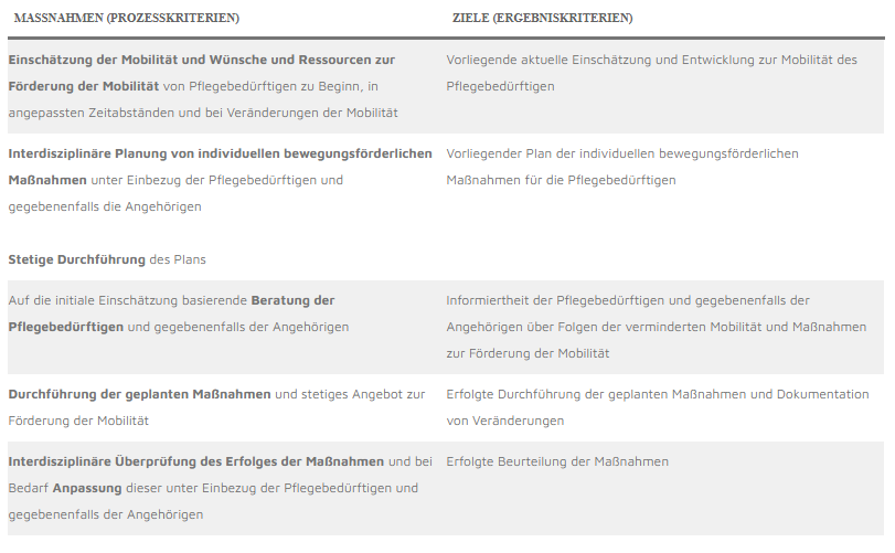 Tabelle 1 Prozess- und Ergebniskriterien zum Erhalt und Förderung der Mobilität