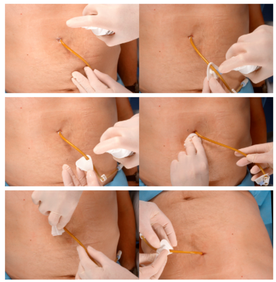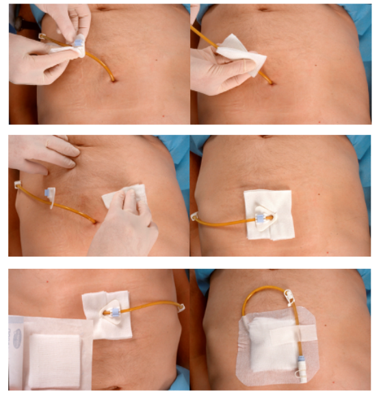 In den ersten sieben bis zehn Tagen sollten beide Sonden täglich verbunden werden, um Infektionen zu verhindern. Danach findet der Verbandswechsel für eine Woche alle zwei Tage statt, danach schließlich alle drei Tage. Außerhalb von Krankenhäusern ist oft gar kein Verband mehr nötig.