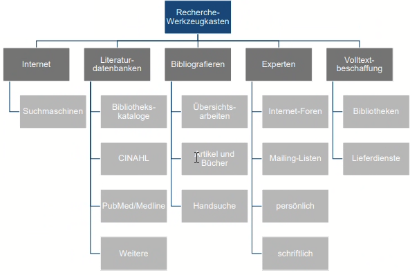 | Identifizieren der wichtigen Veröffentlichungen | Recherchestrategie transparent und nachvollziehbar dokumentieren |