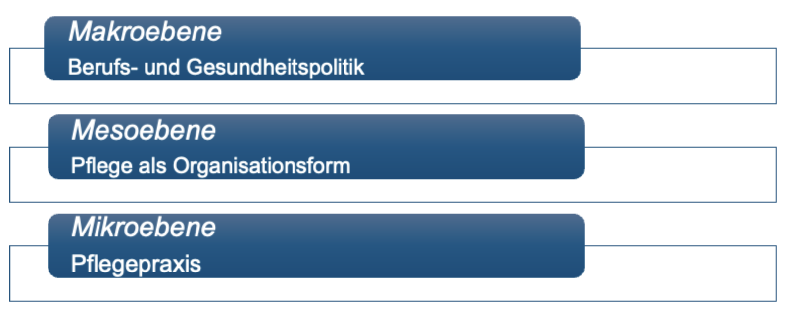 Abbildung 1 Makro-, Meso- und Mikroebene in Bezug auf Pflegeforschung